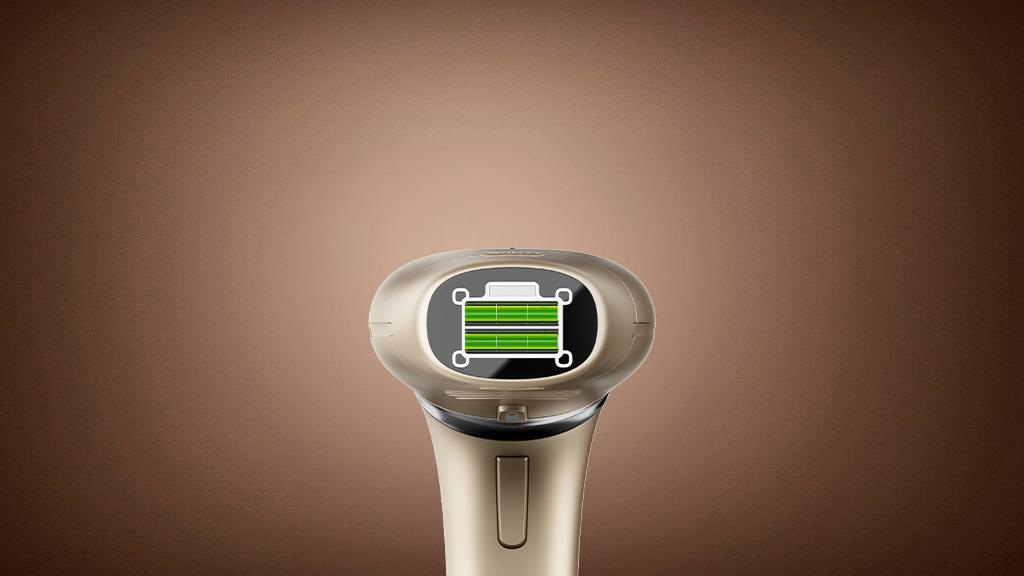 Dabei handelt es sich um einen integrierten Sicherheitssensor, der die Abgabe eines Lichtimpulses durch das Gerät unterbindet, wenn Ihr Hautton für eine Behandlung zu dunkel ist. Der Sensor stellt den Schutz Ihrer Haut sicher.